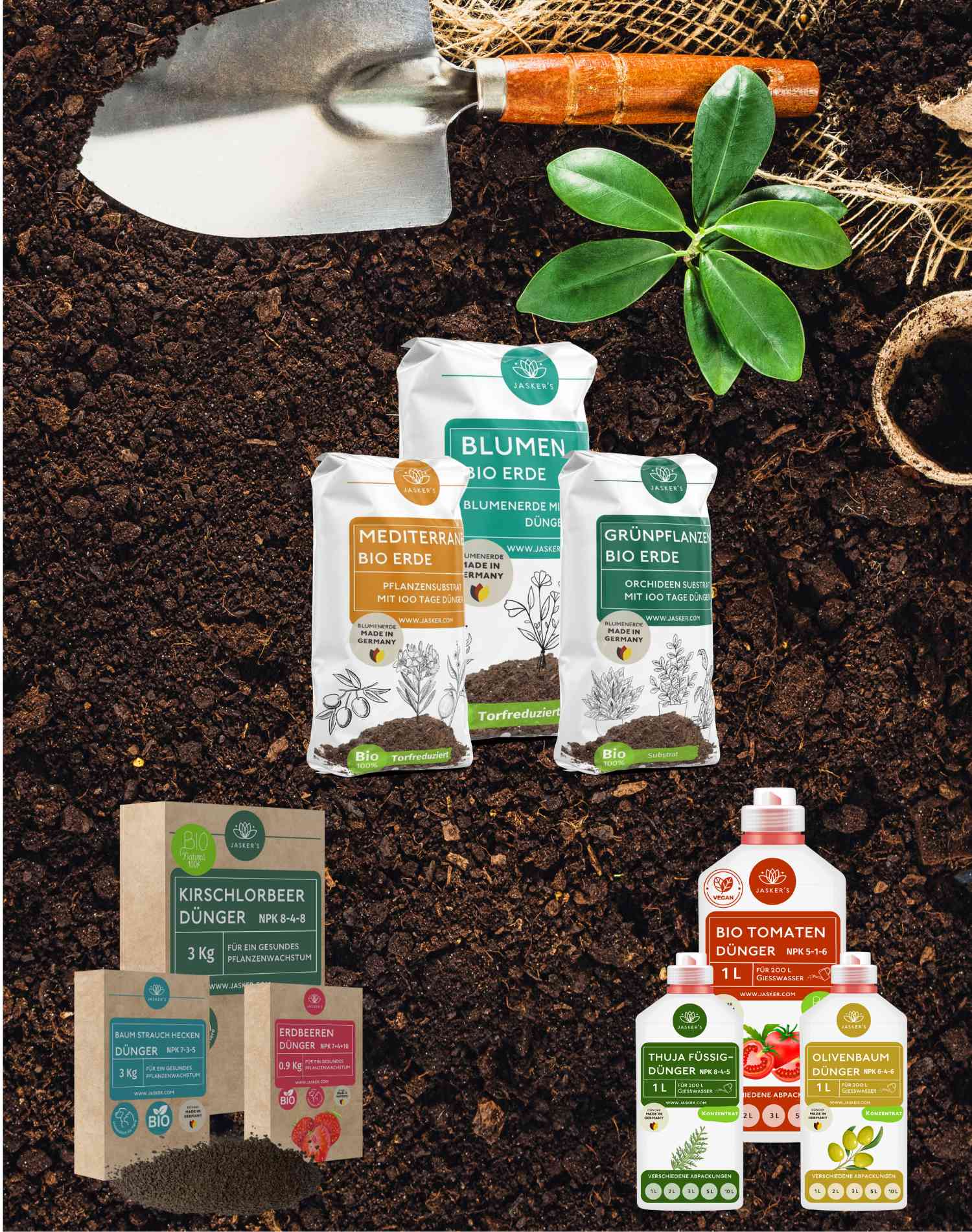 Ideale Versorgung mit JASKER'S Erde für Blumen, Pflanzen, Obst, Gemüse und zur Anzucht